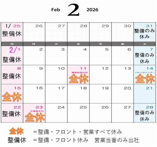 入庫の予約日程はフロント又は担当者と打ち合わせの上お願い致します。