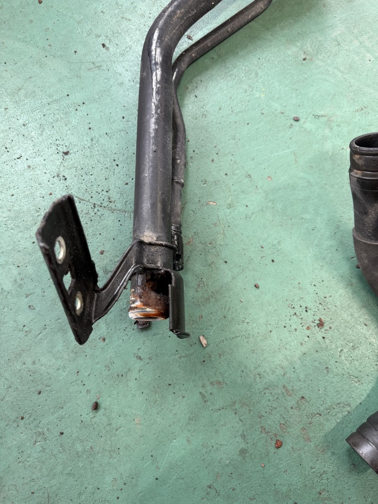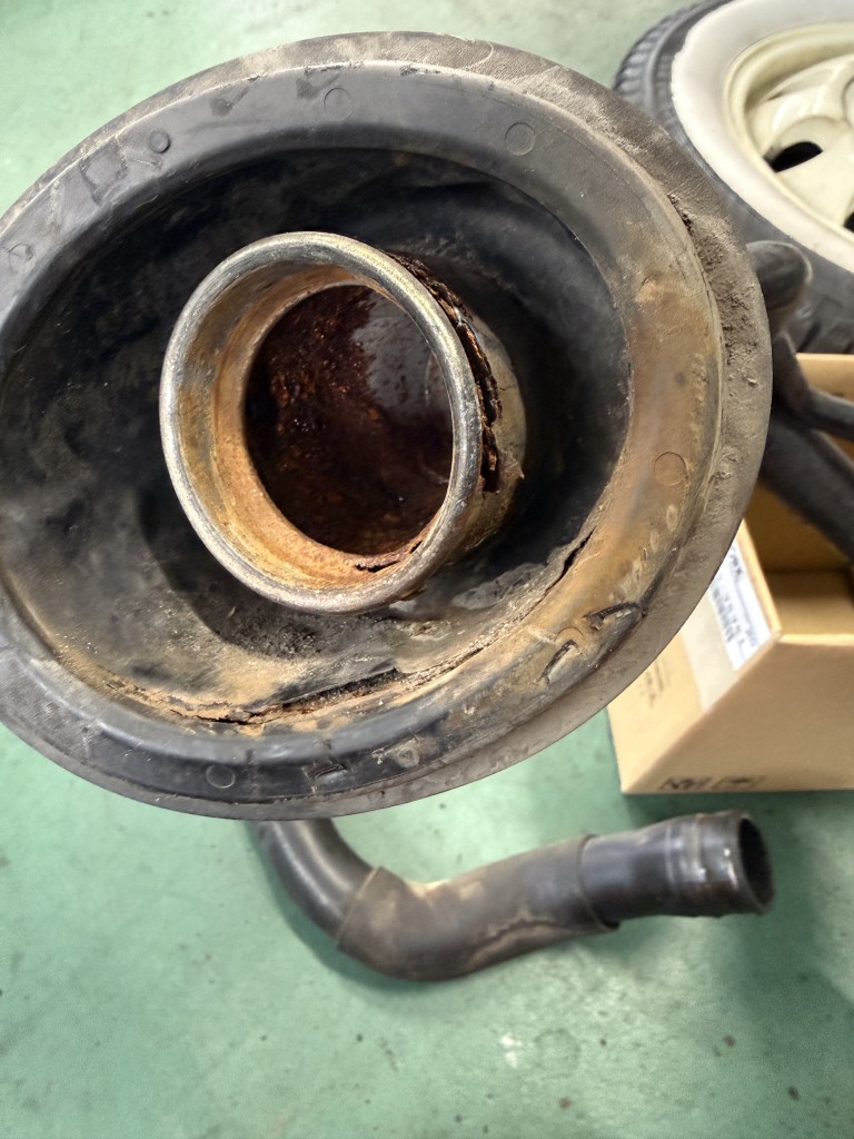 取り外した給油口も腐食してました。トヨタノア、ヴォクシーはよく交換するパイプなのですが日産車では初めてでした。