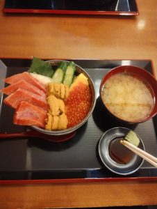 先日食べたマグロ、うに、いくらの三色丼です!おいしかったです!