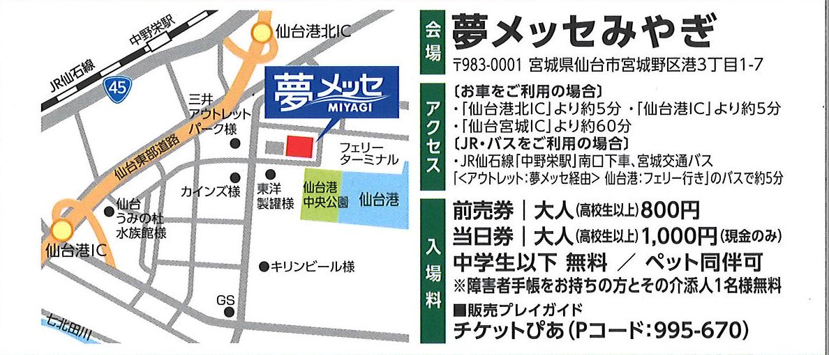 今回は夢メッセ室内での開催ですので、雨などの心配はありません。