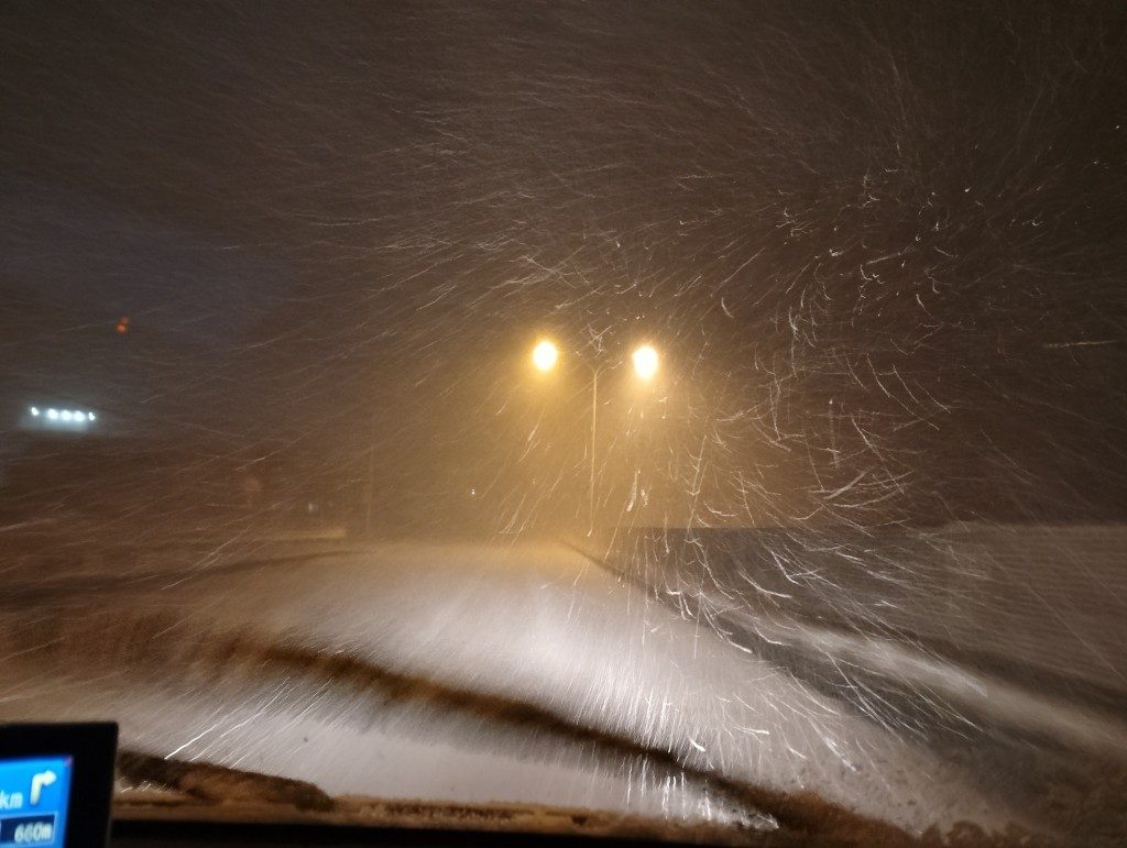 このまま浅虫温泉付近までこの状態です。浅虫を過ぎたら少しだけ吹雪が弱まり、法定速度で走れるようになりましたが、結局八戸まで雪が降り続き疲れ切って午前2時前に自宅に到着。